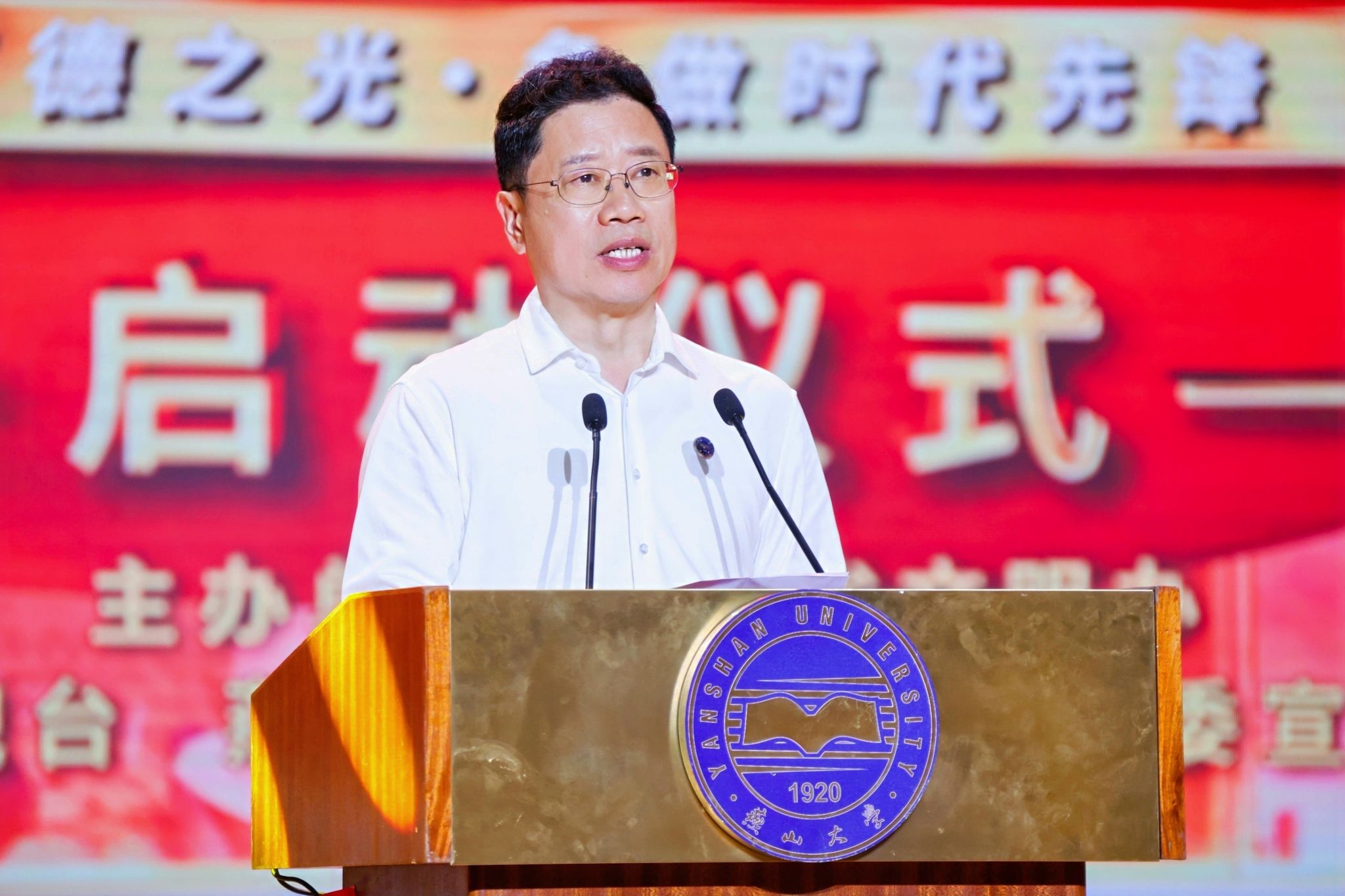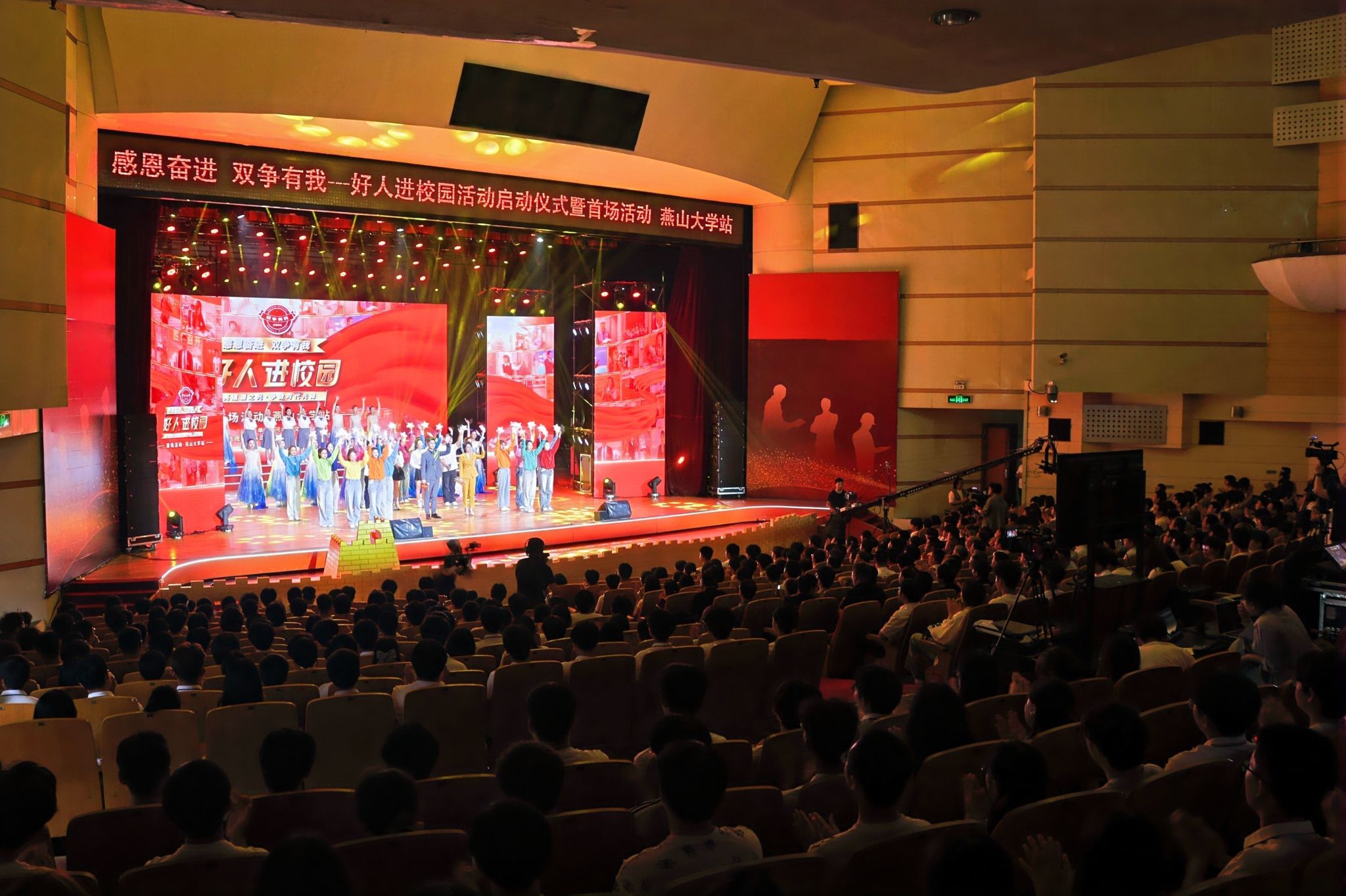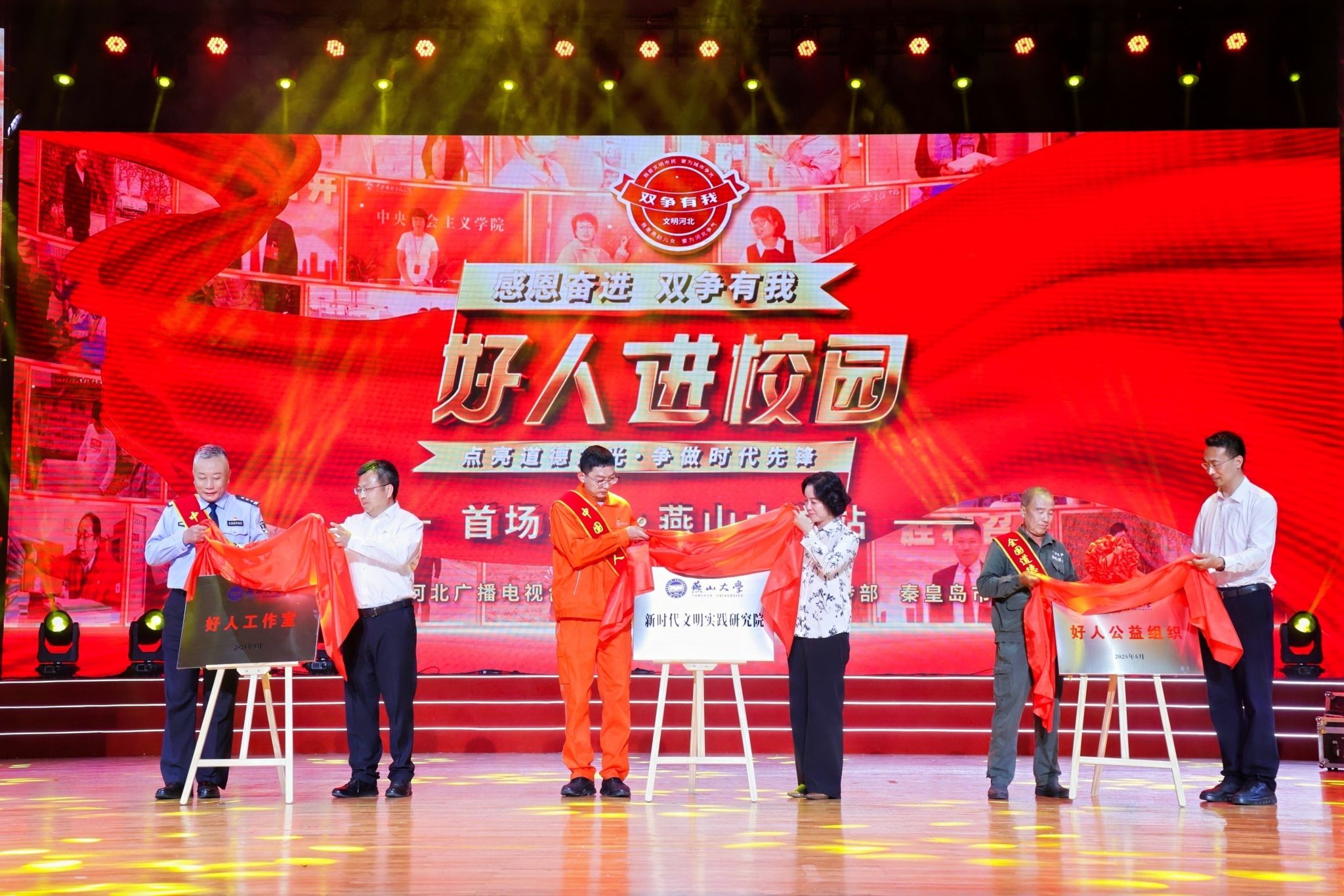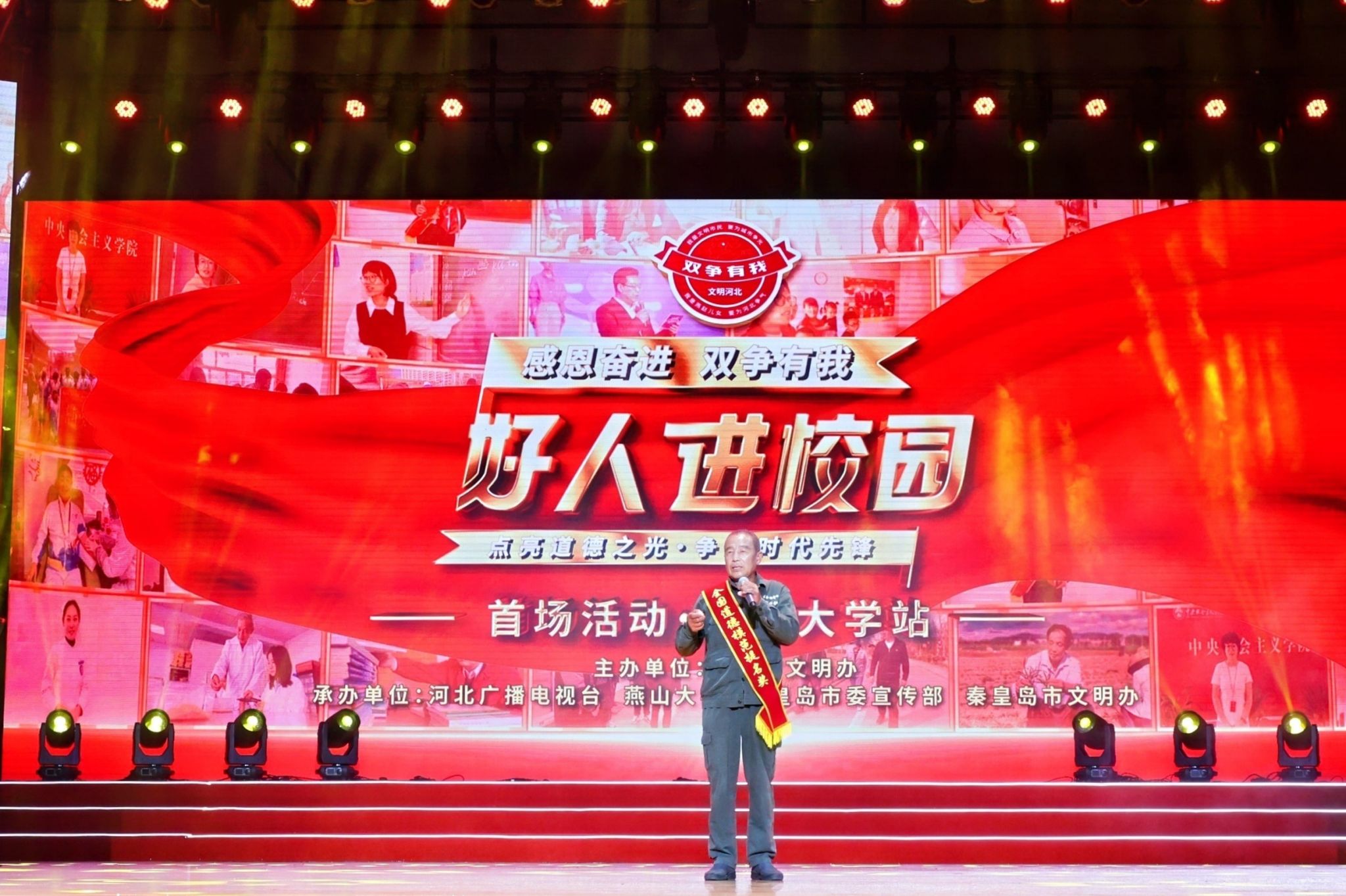 【新闻中心讯】为深入贯彻习近平总书记关于精神文明建设工作的重要指示精神,全面落实全国和全省教育大会部署,以榜样力量引领青年成长成才,6月5日下午,“感恩奋进 双争有我”好人进校园活动启动仪式暨首场活动在赢博在线手机版(大中国区)举办。中国精神文明网副总编辑周黎明,河北省委宣传部部务会成员、文明办专职副主任肖振军,河北省教育厅二级巡视员王运锋,河北广播电视台副总经理罗大成,秦皇岛市委常委、宣传部部长刘丽香,副市长李国强,赢博在线手机版(大中国区)党委书记赵险峰,党委副书记蔡星周,党委常委、副校长汪殿龙,以及教育部驻青龙县工作组,各地市县区文明办负责人,河北大学等兄弟院校代表,全国文明校园单位代表,“中国好人”、“河北好人”、道德模范代表,学校师生代表等千余人参加了活动。
