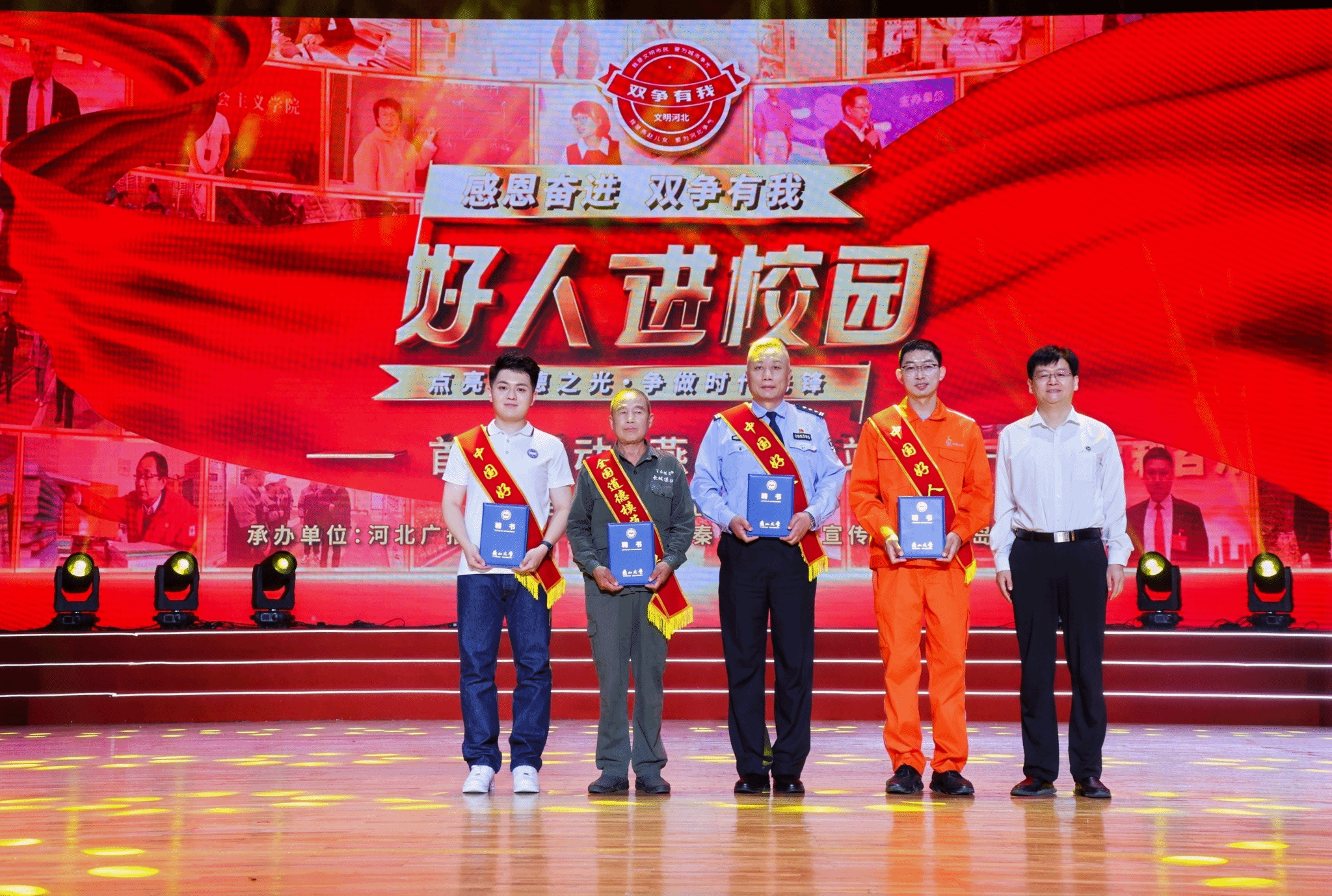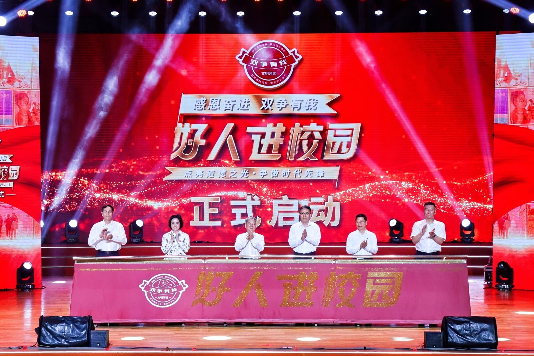 肖振军代表河北省文明办在致辞中表示,省委、省政府深入贯彻落实习近平总书记对河北工作重要指示批示精神,深入开展“双争”活动,推动中国式现代化在河北展现蓬勃生机。全省1014名中国好人正是各行各业的模范榜样。今年省文明办将组织开展6场好人进校园活动,旨在树立学习榜样,强化价值引领,推动形成崇德向善,见贤思齐的良好风尚。