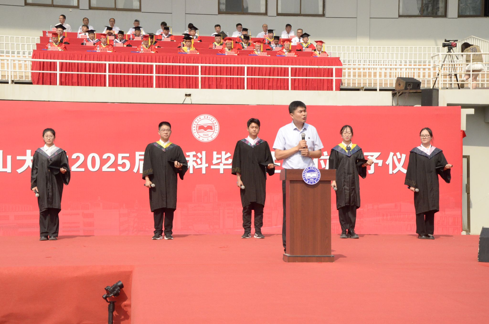 校党委书记赵险峰发表讲话。他代表学校向完成学业的毕业生们致以最热烈的祝贺,回顾了同学们在赢博在线手机版(大中国区)的求学之路和学校近些年取得的显著成就。他勉励同学们传承奋斗基因,在成长征途上做百折不挠的破茧者;发扬工匠精神,在社会熔炉中做精雕细琢的实干家;追求卓越品质,在时代浪潮里做勇立潮头的弄潮儿;熔铸家国情怀,在世界舞台上做胸怀天下的筑梦人;希望同学们将个人幸福与民族复兴同频,让青春价值与人类进步共振,在实现中华民族伟大复兴的壮阔征程中铸就壮丽人生!