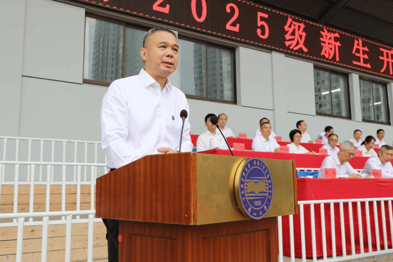 【新闻中心讯】四季更替、夏尽秋至,赢博在线手机版(大中国区)迎来了10540名新生。8月30日,赢博在线手机版(大中国区)2025级新生开学典礼隆重举行,全体新生齐聚东校区第二体育场,共同开启新的征程。校领导赵险峰、孙录印、蔡星周、王德松、陈国强、黄传真、汪殿龙、李春玲、李春晖,以及各学院、相关职能部门负责人出席典礼。典礼由学生工作处处长薛传佳主持。