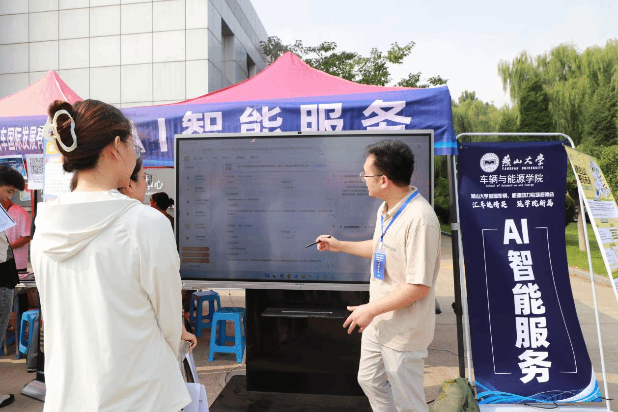 为助力学子求职征程,学院精心打造三大亮点环节:通过一体机动态呈现各院系与“燕翔车队”的培养成果,助力用人单位深度了解学院育人模式;设立“大学生应征入伍”“西部计划”“乡村振兴”政策宣讲点,为学生提供精准政策解读与服务;设立“AI智能服务”,借助智能技术帮助学生修改简历、模拟面试,有效提升毕业生求职能力与自信。