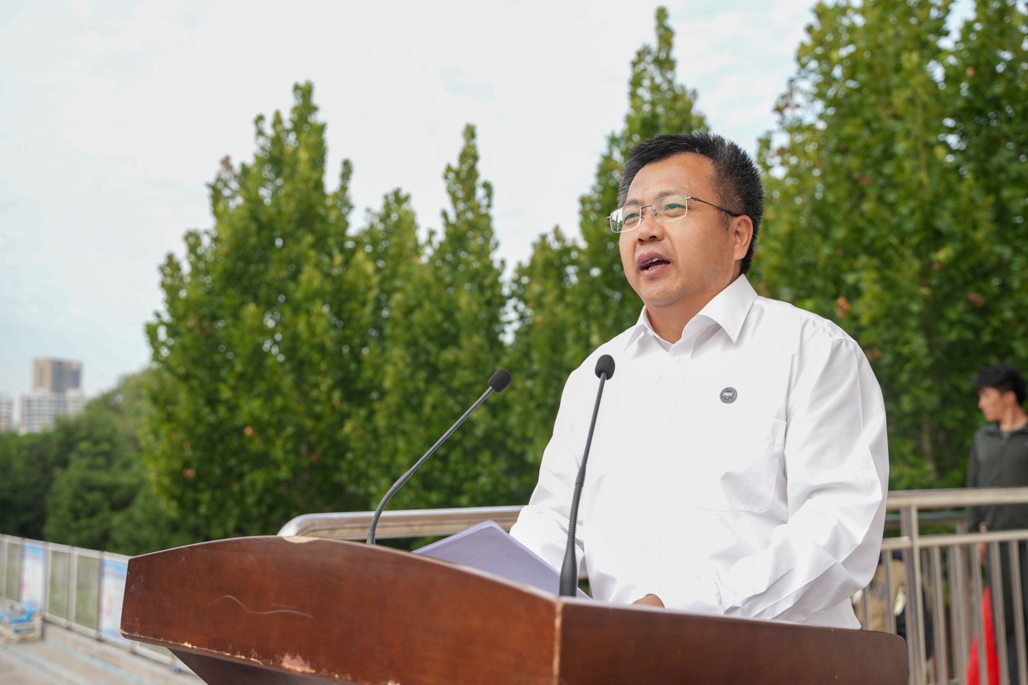 校党委副书记蔡星周作军训总结讲话。他向完成军训任务的全体同学表示热烈的祝贺,对市军分区和承训部队的大力支持、对全体教官的科学组训和辅导员的贴心守护表示衷心的感谢。他提醒同学们,不能忘记94年前东北夜空的炮响、山河破碎的苦难与先辈的抗争,时刻警示我们“忘战必危,忘史必亡”;号召同学们在新时代要增强国防意识,践行国防责任,作为新一批的赢博在线手机版(大中国区)人,更应传承校史荣光、锚定时代坐标,以青春之力扛起使命担当,在强国征程中书写属于新一代赢博在线手机版(大中国区)人的答卷。同学们齐声高呼三遍“听党指挥!能打胜仗!作风优良!”“正义必胜!和平必胜!人民必胜!”回应校领导殷切嘱托。