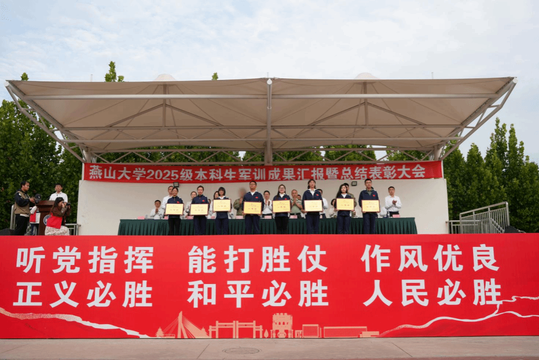 展演结束后,党委常委、副校长李春玲宣读《关于准予2025级学生获得军训学分的决定》和《关于表彰2025级学生军训优秀集体和个人的决定》。与会领导依次为军训先进集体、优秀学员、优秀教官、优秀指导员等代表颁发荣誉证书。