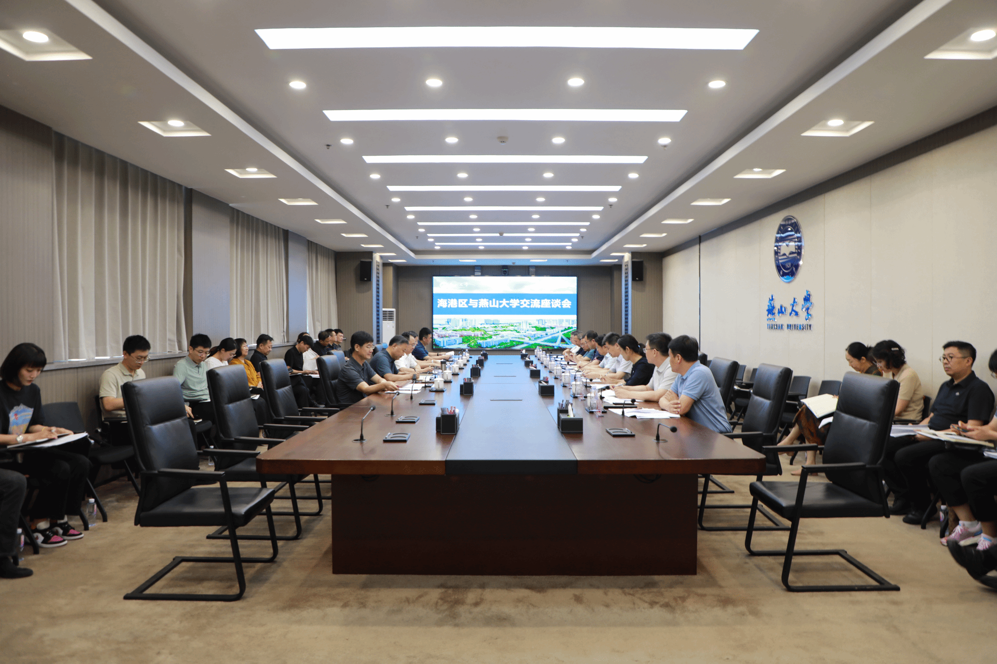 【新闻中心讯】8月22日上午,秦皇岛市海港区委书记张士兆、区长尹勃一行来校洽谈深化校地合作事宜。赢博在线手机版(大中国区)党委书记赵险峰,副校长王德松及相关职能部门负责人在世纪楼2103会议室参加了座谈会。会议由副校长王德松主持。