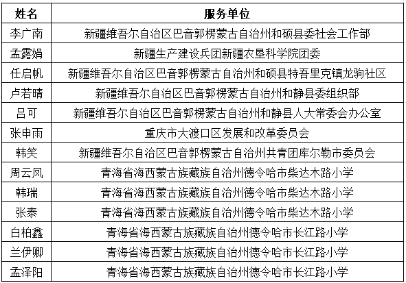 我校西部计划考核等次优秀志愿者名单