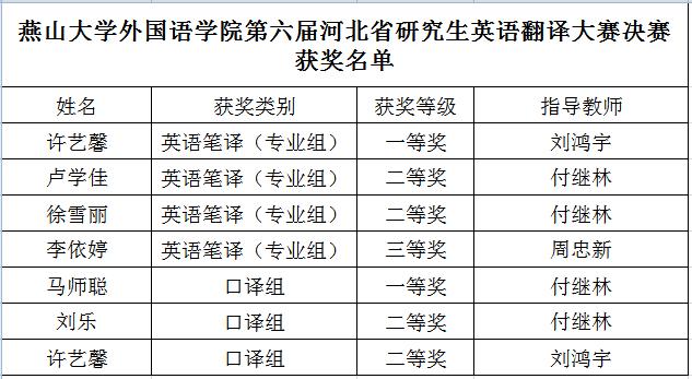 在研究生人才培养方面,我院始终秉承“强基础-重实践”的培养理念,深入贯彻“以赛促教,赛教融合”的人才培育模式,以提高翻译专业学位研究生的实践能力为目标,开拓实践渠道和建设实践平台,给研究生提供更多的实战机会,研究生培养质量不断提高。(编辑 魏欣宇)