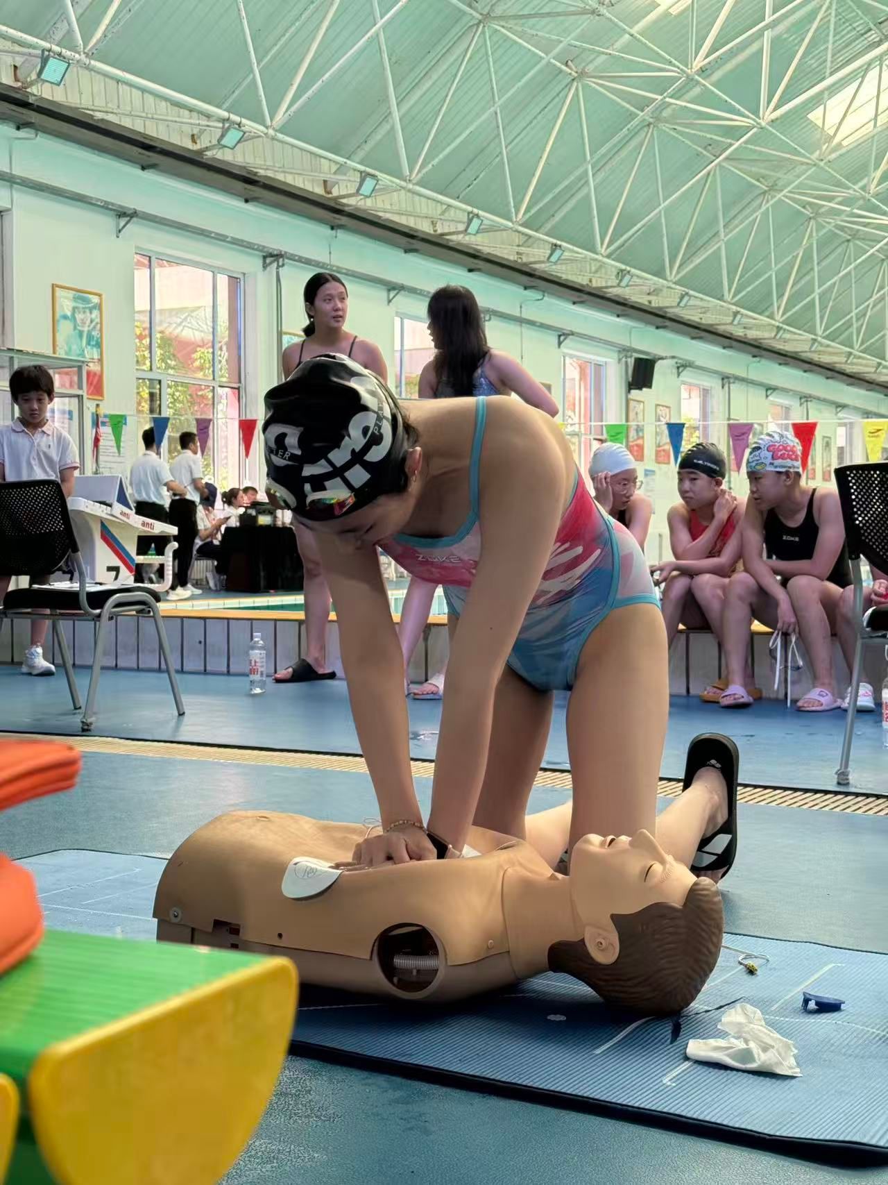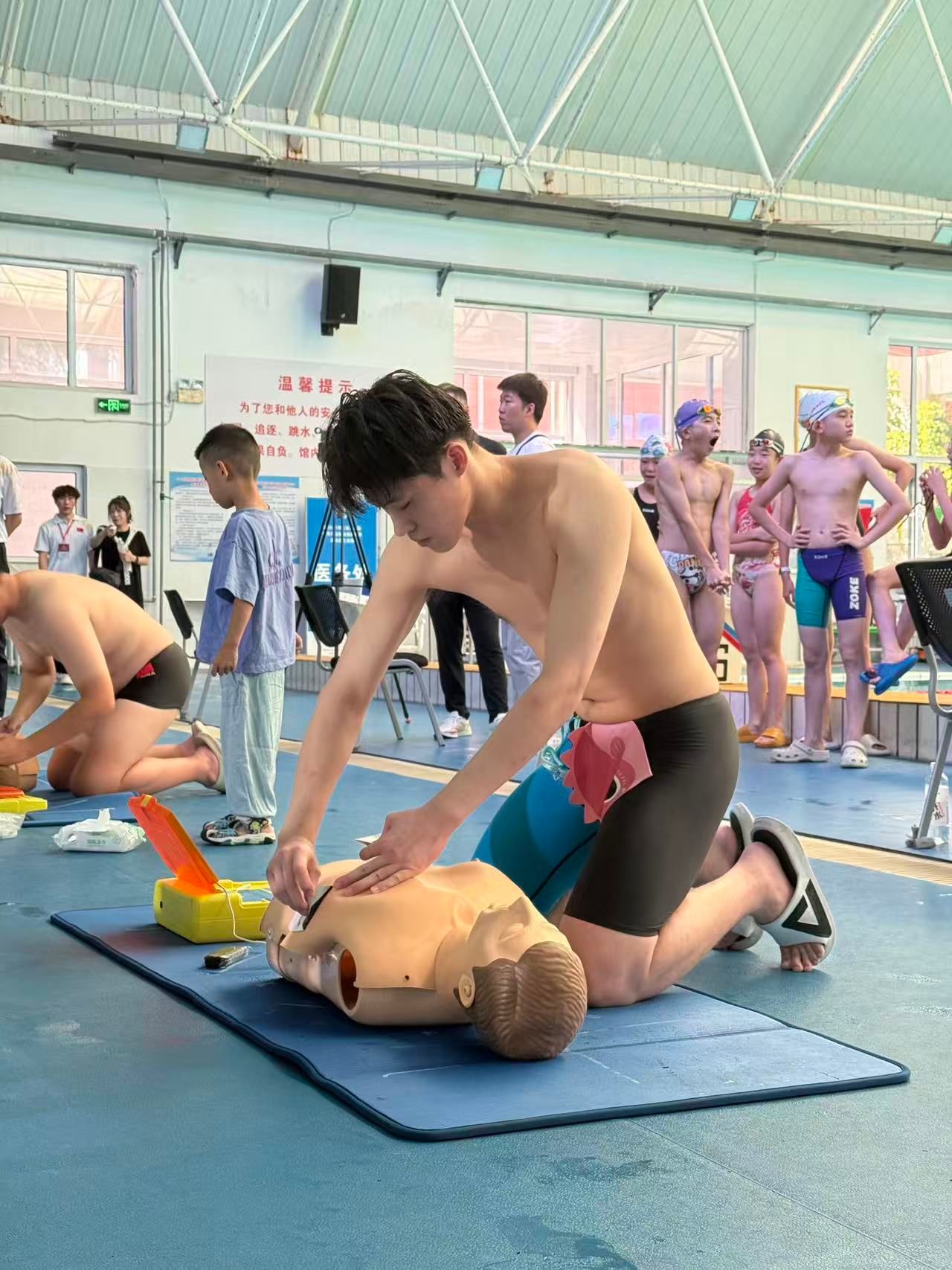男子50米全能救生决赛中,陈彦龙老师反应迅速、技术精湛,在拖带假人、障碍游泳及抛绳救援等环节表现突出,以明显优势夺冠。女子组张琬琳发挥出色,动作规范高效,以领先第二名近一分钟的显著优势勇夺第一。 团体接力项目中,我校队员配合默契、全力冲刺,最终在众多强队中名列第六。