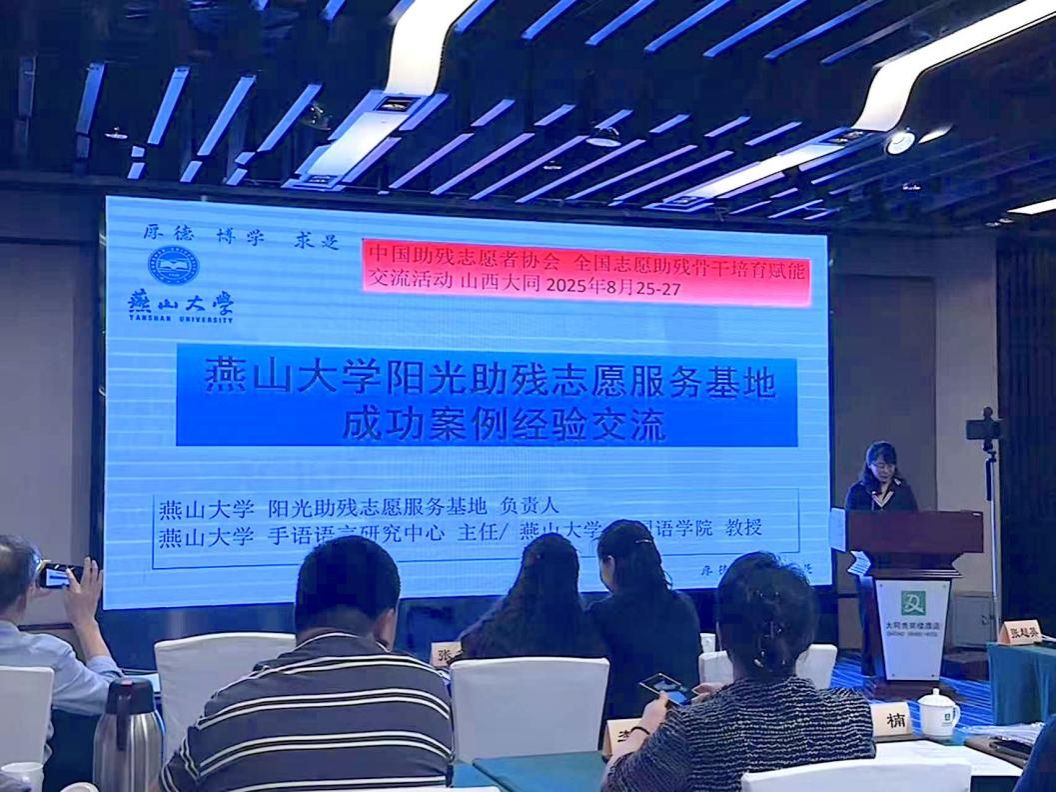 【新闻中心讯】8月26日,赢博在线手机版(大中国区)全国阳光助残志愿服务基地负责人刘鸿宇教授受中国助残志愿者协会邀请,赴山西大同参加中国助残志愿者协会第二届理事会第五次会议和全国志愿助残骨干培育赋能交流活动,并作基地工作专题汇报。此次活动旨在深入学习贯彻习近平总书记对残疾人事业和志愿服务的重要指示,落实中央两办《关于健全新时代志愿服务体系的意见》精神。中国助残志愿者协会结合第九届全国残联专职委员知识竞赛决赛,同期举办全国助残志愿骨干培育赋能交流活动。