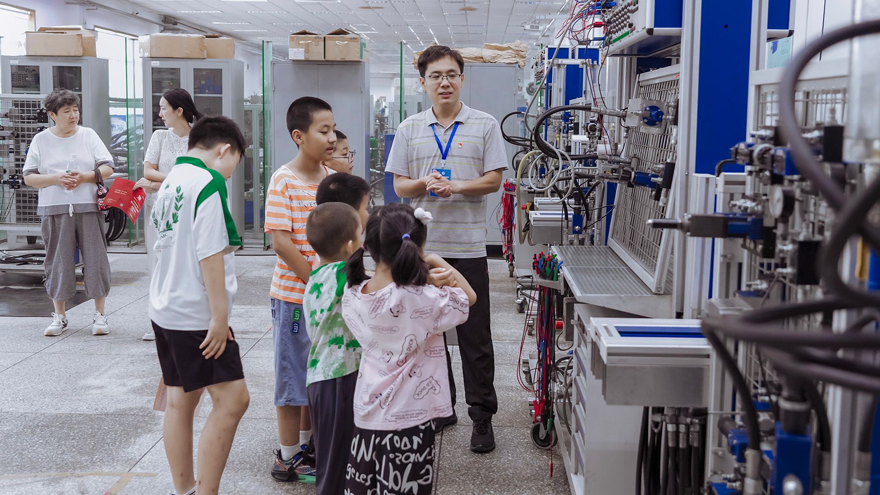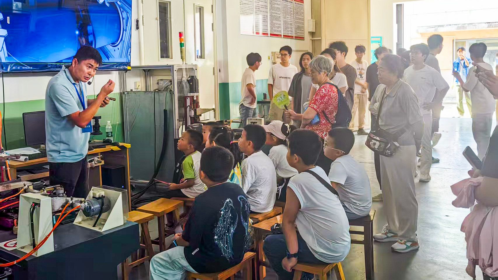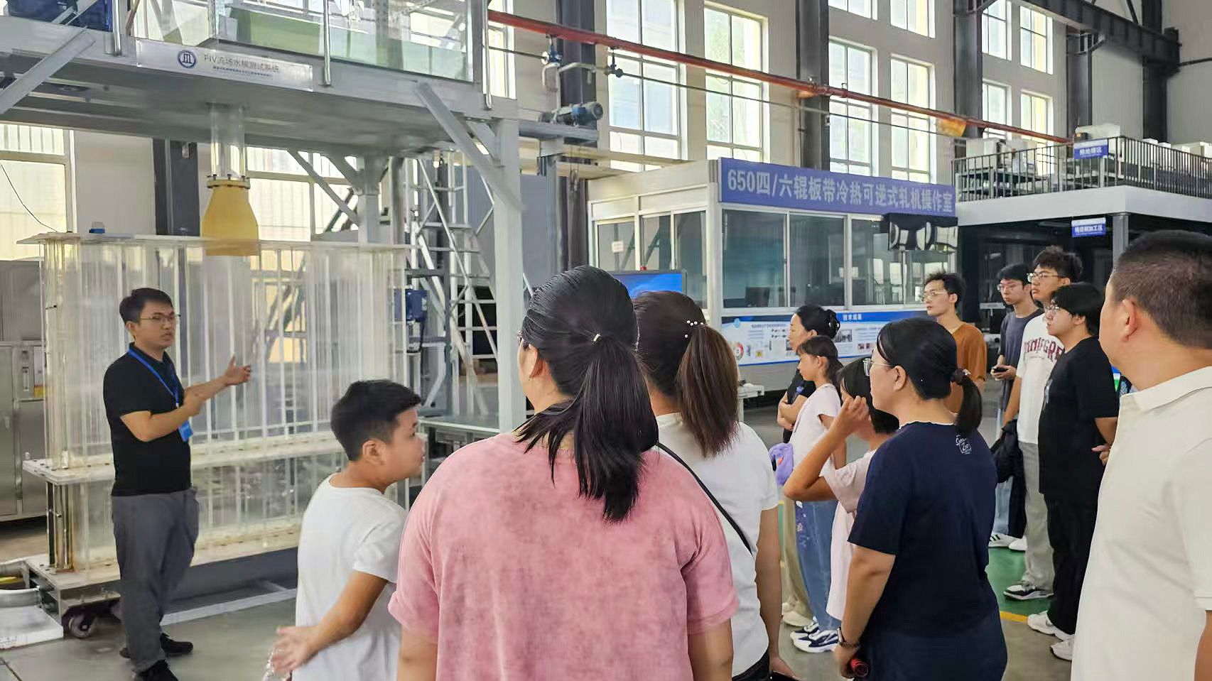 科普人员介绍冶金工艺PIV试验装置(河北省轧制技术与装备科普示范中心)