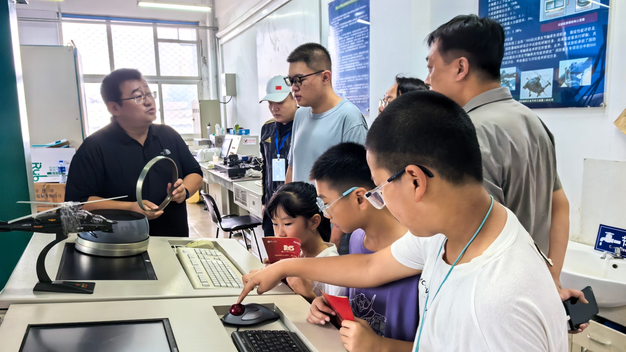 科普人员介绍直升机关键构件自润滑技术(河北省国防科技科普示范基地)