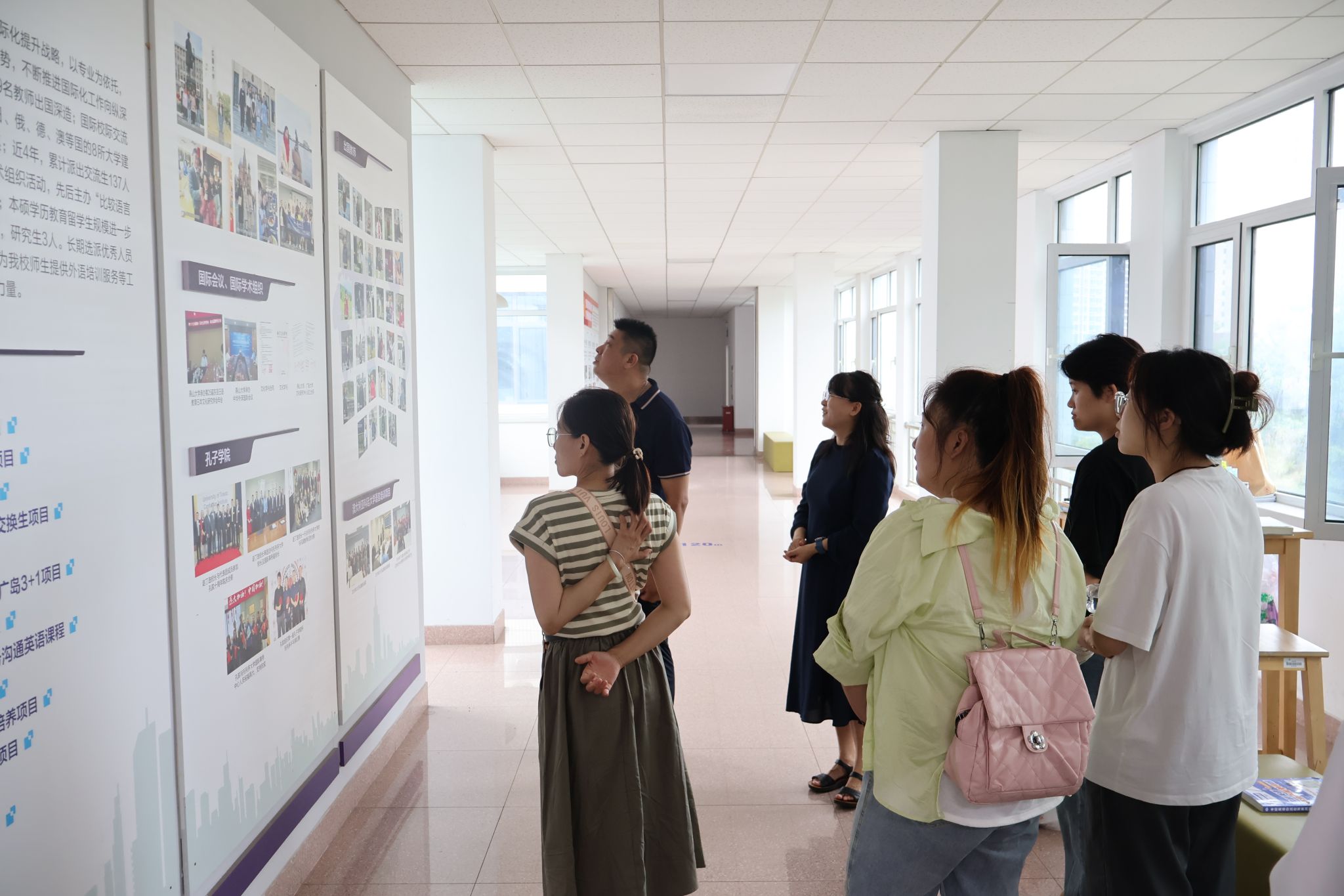 在参观外国语学院院史墙时,郑杰主席了解到学院在英日德法俄等多语种的发展成就,鼓励刘鸿宇教授将手语事业做大做强,培养更多手语外语复合型人才。