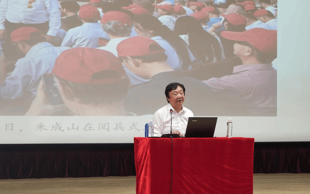 在以《抗战精神永远是激励中华民族伟大复兴的强大精神动力》为题的报告中,朱成山教授从四个视角展开论述:一是中国5000多年文明底蕴,孕育了伟大的抗战精神。他指出中华民族历来崇尚和平,始终秉持爱国主义精神与崇高民族气节,面对日本帝国主义侵略的深重危机,民族血脉中的勇敢自强基因被彻底激发,民族精神实现历史性升华。二是波澜壮阔的抗日战争,铸就了伟大的抗战精神。通过回顾抗战历程,朱成山教授阐述了伟大抗战精神形成的历史条件,特别强调中国共产党在抗日战争中发挥的中流砥柱作用,并系统解读了伟大抗战精神的丰富内涵。三是中国投身世界反法西斯战争行列,凝聚了伟大的抗战精神。他指出抗战精神蕴含着伟大的国际主义精神,并从抗战时间跨度和规模、战略全局与作用、东西方战场协同作战、对二战的贡献和影响力四个方面论述了中国抗战为世界反法西斯战争胜利作出的不可磨灭的历史贡献。四是民族复兴的壮丽事业,召唤传承与弘扬伟大抗战精神。他深入分析了伟大抗战精神的时代价值和新时代继承伟大抗战精神的意义,提出弘扬抗战精神的路径,并强调面对实现中华民族伟大复兴征程上复杂严峻的国际形势和各种风险挑战,必须更加有力地传承和发扬这一伟大精神,使其转化为攻坚克难、砥砺前行的强大动力。