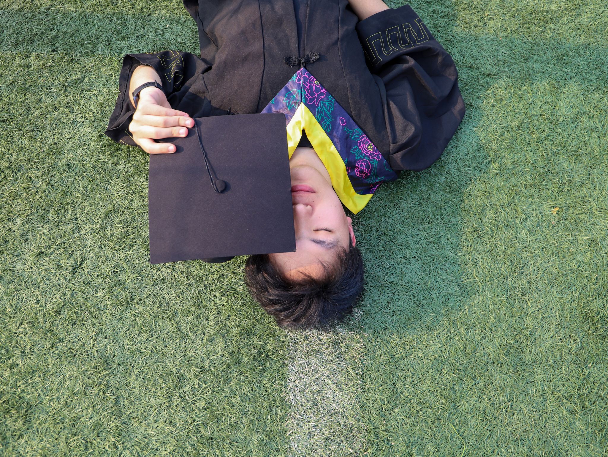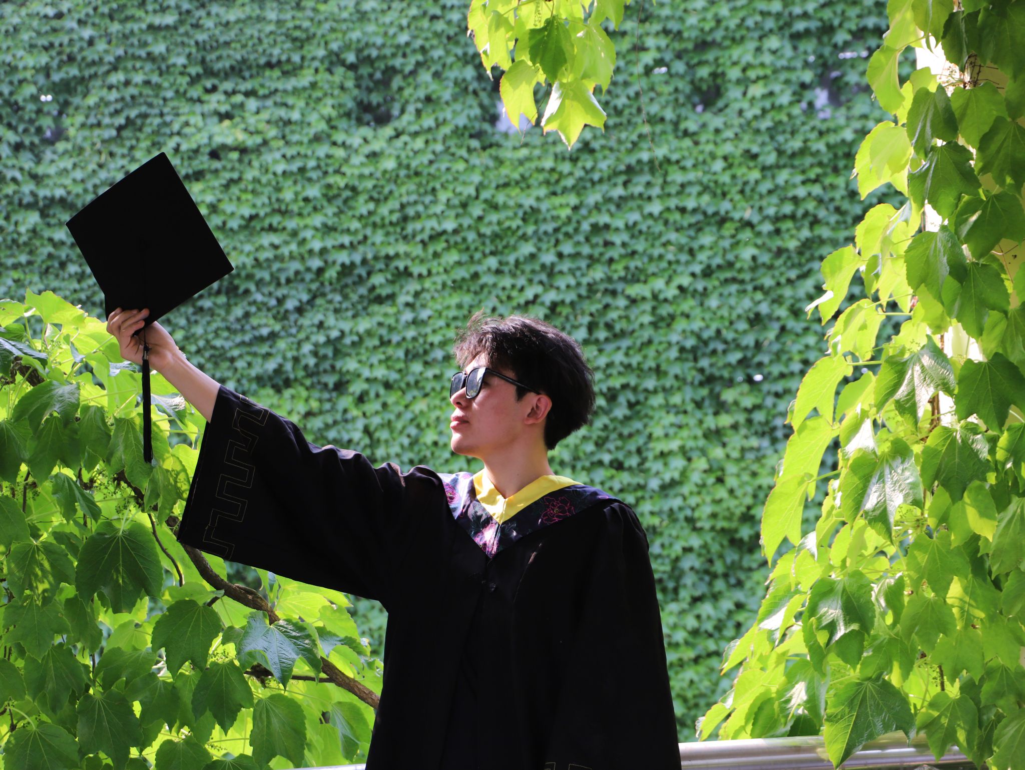 毕业季的紫藤花架下